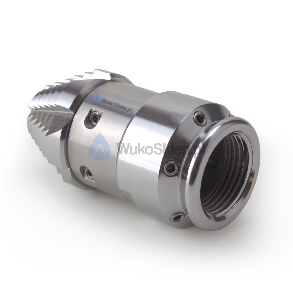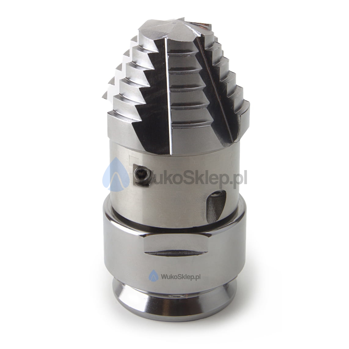 Dysza wiercąca WUKO do intensywnego czyszczenia rur. Frezującą głowica skutecznie przebija twarde osady. Boczne strumienie obrotowe dokładnie oczyszczają każdy fragment rury, zapewniając czystość i przepustowość.