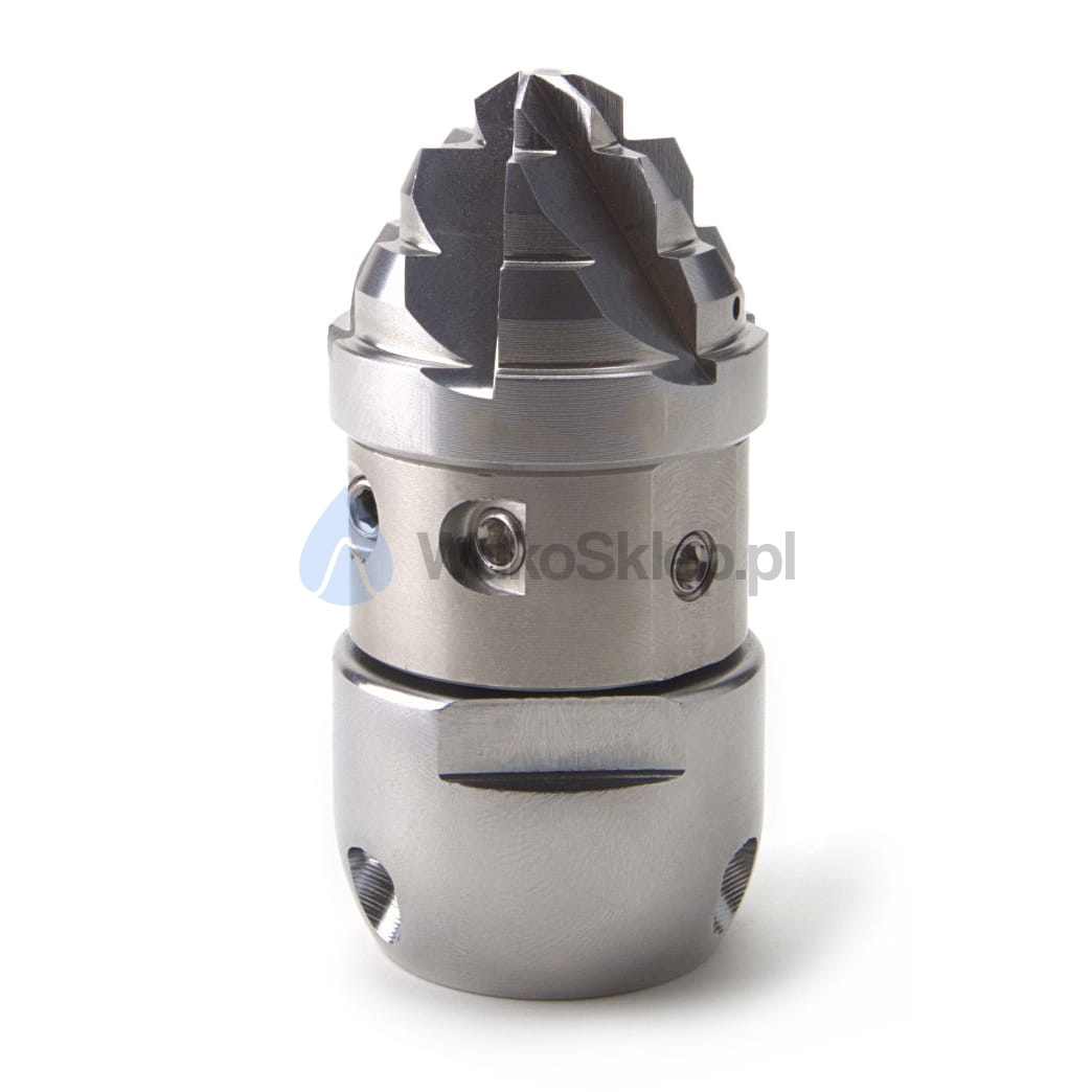 Dysza wiercąca WUKO do intensywnego czyszczenia rur. Frezującą głowica skutecznie przebija twarde osady. Boczne strumienie obrotowe dokładnie oczyszczają każdy fragment rury, zapewniając czystość i przepustowość.