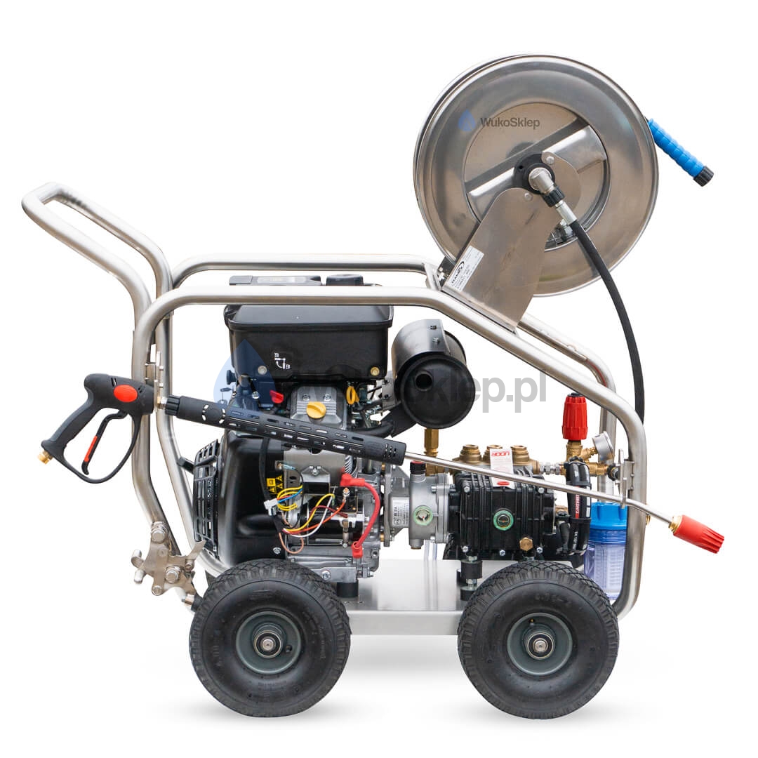 Wyposażona w wydajny silnik Briggs & Stratton Vanguard oraz włoską pompę UDOR, gwarantuje niezawodność i długotrwałą pracę. Doskonale sprawdzi się przy czyszczeniu kostki brukowej, dachów, elewacji i wielu innych powierzchni.