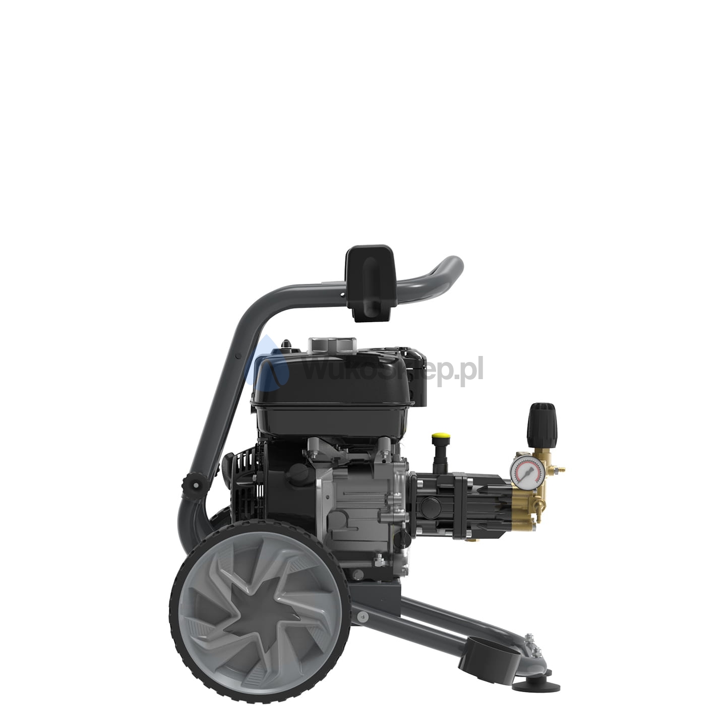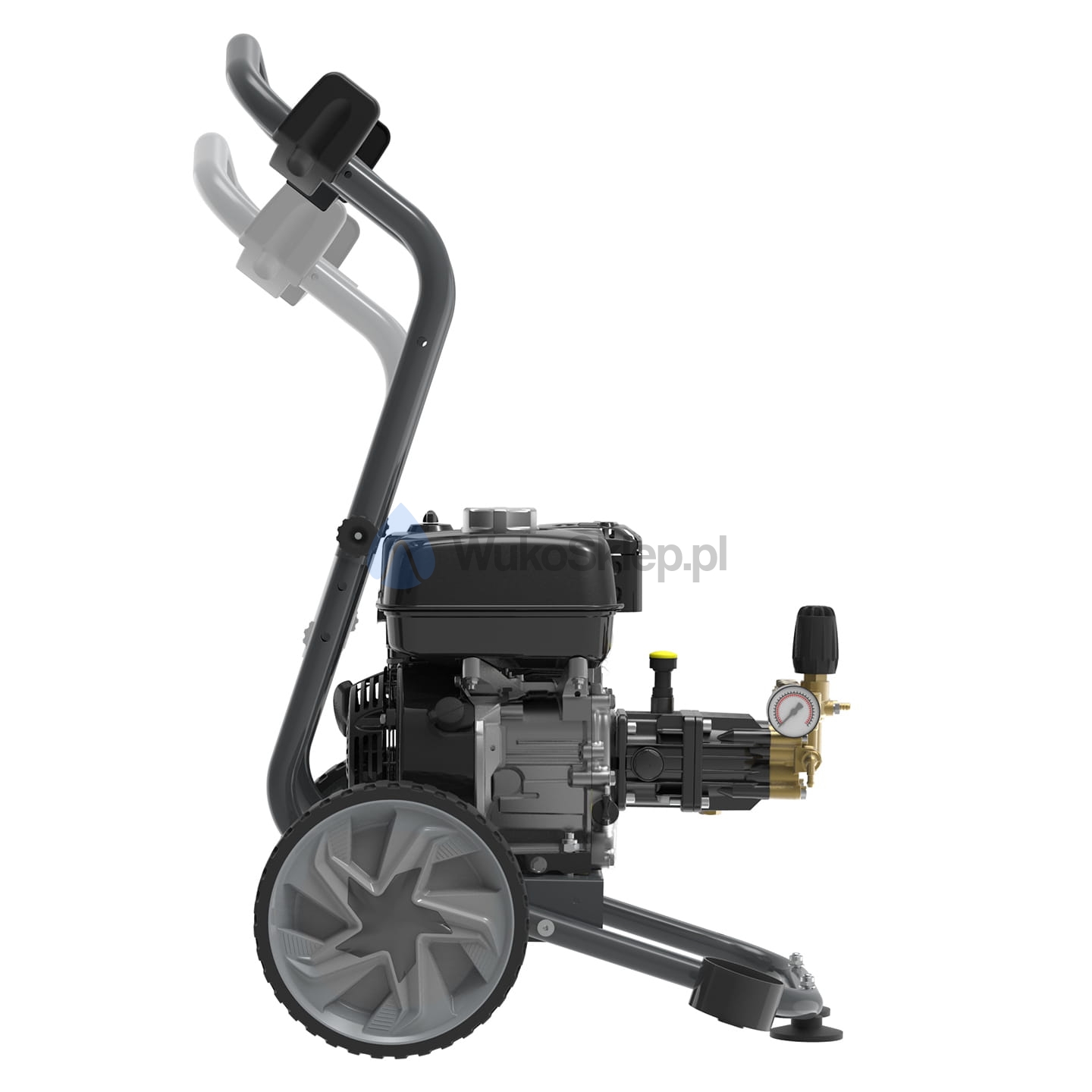 Wyposażona w duże koła, gumowe nóżki antywibracyjne i regulowaną kierownicę, zapewnia łatwość manewrowania i stabilność na nierównych powierzchniach. Serce myjki stanowi silnik Loncin G200 F o mocy 6 KM, współpracujący z samozasysającą pompą Comet, co gwarantuje wysokie ciśnienie i przepływ wody, niezbędne do skutecznego usuwania zabrudzeń.