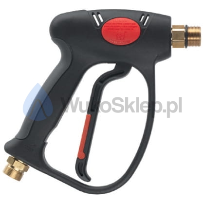 Pistolet wykonany z wysokiej klasy tworzywa sztucznego z elementami mosiężnymi. Stosowany w przemyśle, myjkach oraz myjniach samochodowych. Możliwość zamówienia wraz ze złączem obrotowym. Obrotowe złącze zapobiega skręcaniu się węża. Pistolet z gwintami M22 M przeznaczony do myjek ciśnieniowych.