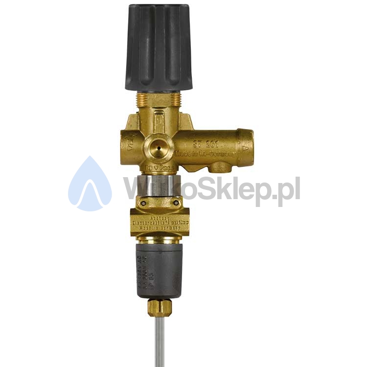ST-261 to zawór odciążający (by-pass) z wbudowanym mikrowyłącznikiem do układów wysokociśnieniowych. Po zwolnieniu spustu pistoletu płyn przechodzi w obieg by-pass, co stabilizuje ciśnienie i umożliwia sterowanie osprzętem elektrycznym bez opóźnień.